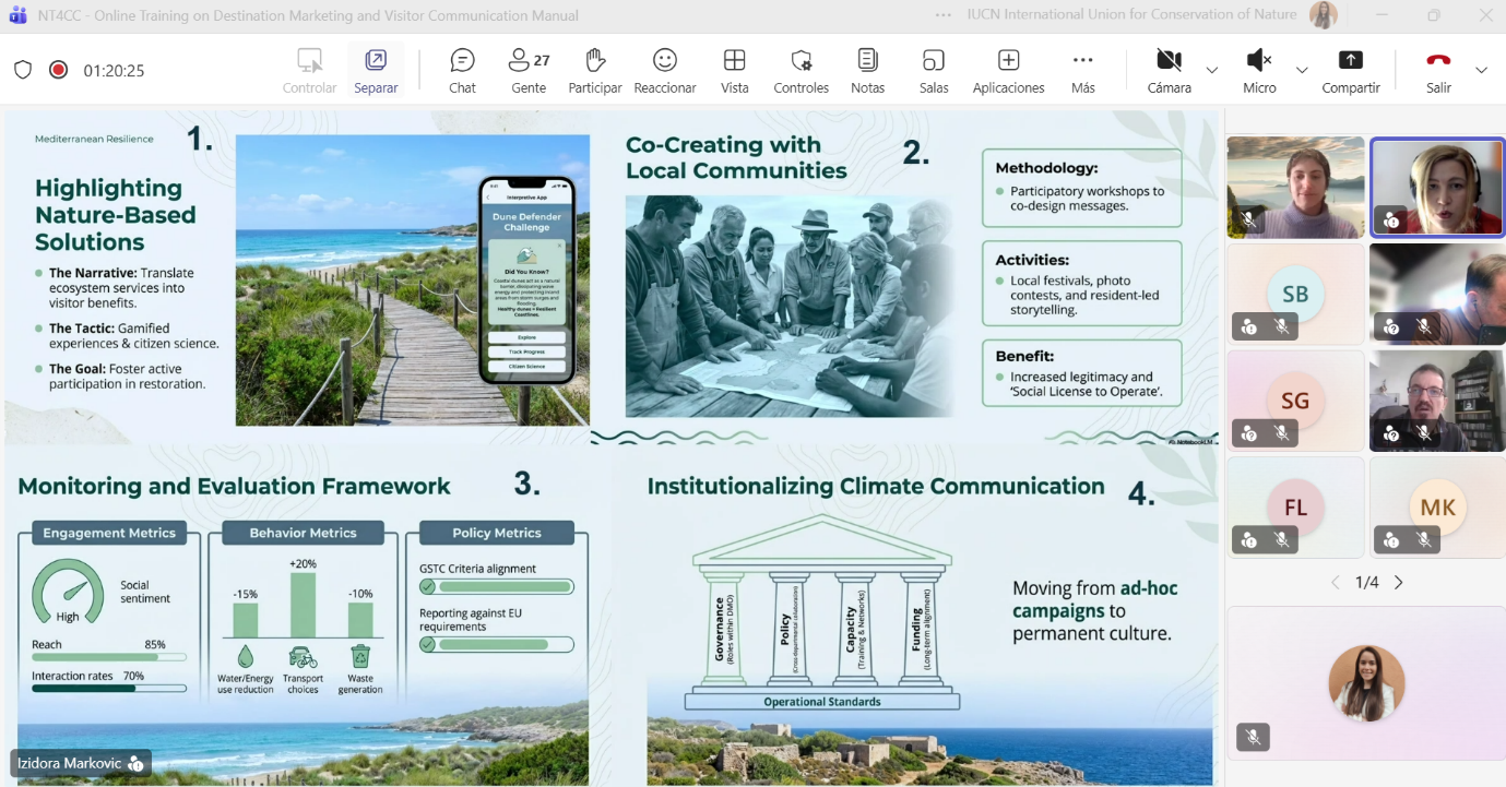 On 26 February 2026, the Climate-Smart Destination Marketing and Visitor Communication training was held online within the framework of the NaTour4CChange project. The session introduced the project’s new Manual on Destination Marketing and Communication for Climate Action, developed to support pilot destinations in designing effective marketing and communication strategies that integrate climate action into tourism management.